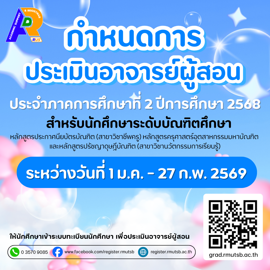 กำหนดการประเมินอาจารย์ผู้สอน ประจำภาคการศึกษาที่ 2 ปีการศึกษา 2568 ระดับบัณฑิตศึกษาคณะครุศาสตร์อุตสาหกรรม | ? ครั้ง เมื่อ 1 สัปดาห์ที่แล้ว