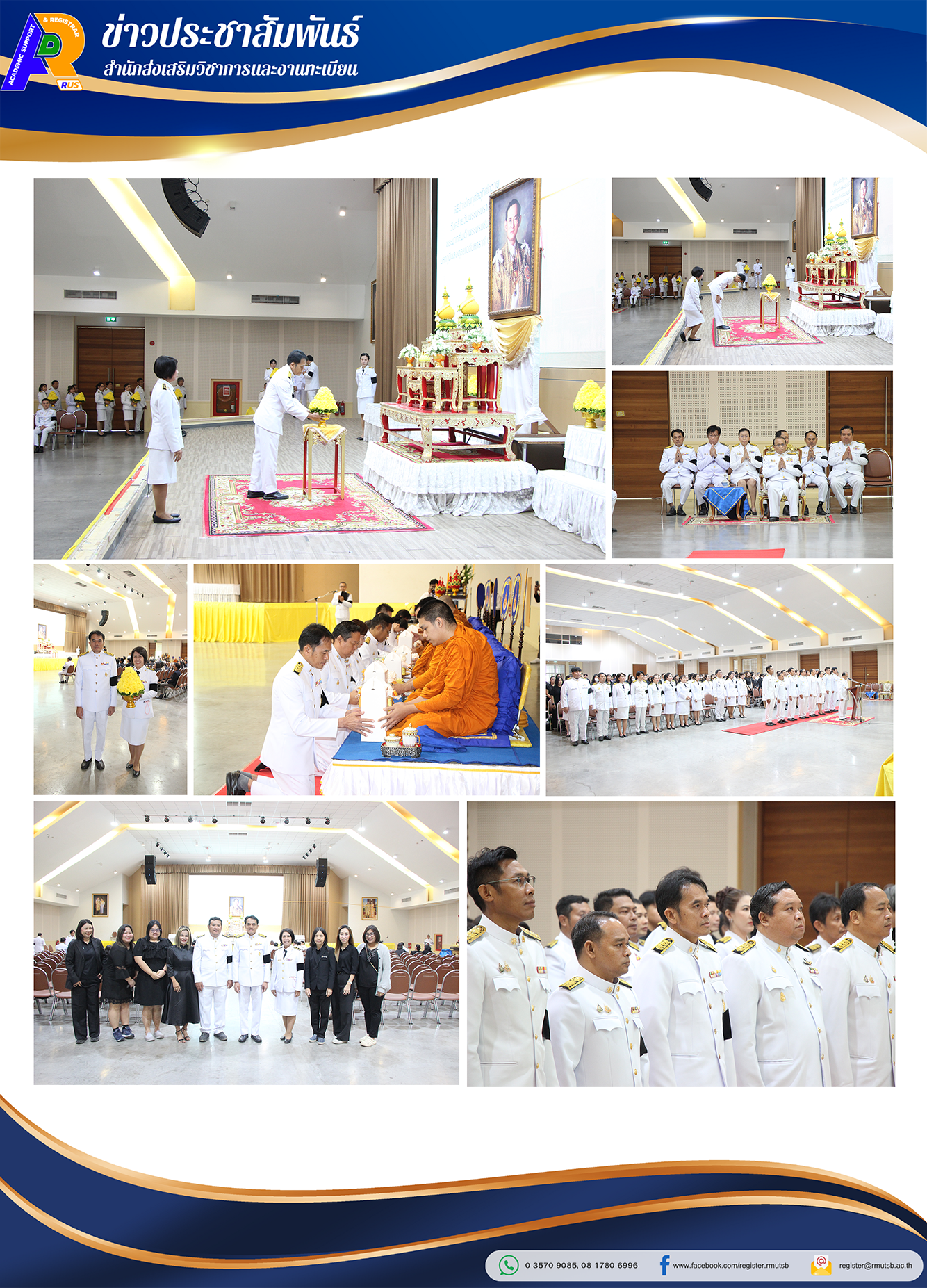 เมื่อวันพฤหัสบดีที่ 4 ธันวาคม 2568 ผู้ช่วยศาสตราจารย์ ดร.ธนาพล สุขชนะ ผู้อำนวยการสำนักส่งเสริมวิชาการและงานทะเบียน พร้อมด้วยบุคลากร ร่วมพิธีบำเพ็ญทักษิณานุปทานกุศลถวายพระบาทสมเด็จพระบรมชนกาธิเบศร มหาภูมิพลอดุลยเดชมหาราช บรมนาถบพิตร เบื้องหน้าพระบรมฉายาลักษณ์ เพื่อแสดงออกถึงความจงรักภักดีและน้อมรำลึกในพระมหากรุณาธิคุณฯ เนื่องในวันคล้ายวันพระบรมราชสมภพพระบาทสมเด็จพระบรมชนกาธิเบศร มหาภูมิพลอดุลยเดชมหาราช บรมนาถบพิตร วันชาติ วันพ่อแห่งชาติ 5 ธันวาคม 2568 และวันดินโลก เพื่อแสดงออกถึงความจงรักภักดีและน้อมรำลึกในพระมหากรุณาธิคุณ ณ หอประชุมพระพิรุณ - ระลึกโปรดเกล้าฯ มหาวิทยาลัยเทคโนโลยีราชมงคลสุวรรณภูมิ ศูนย์พระนครศรีอยุธยา หันตรา