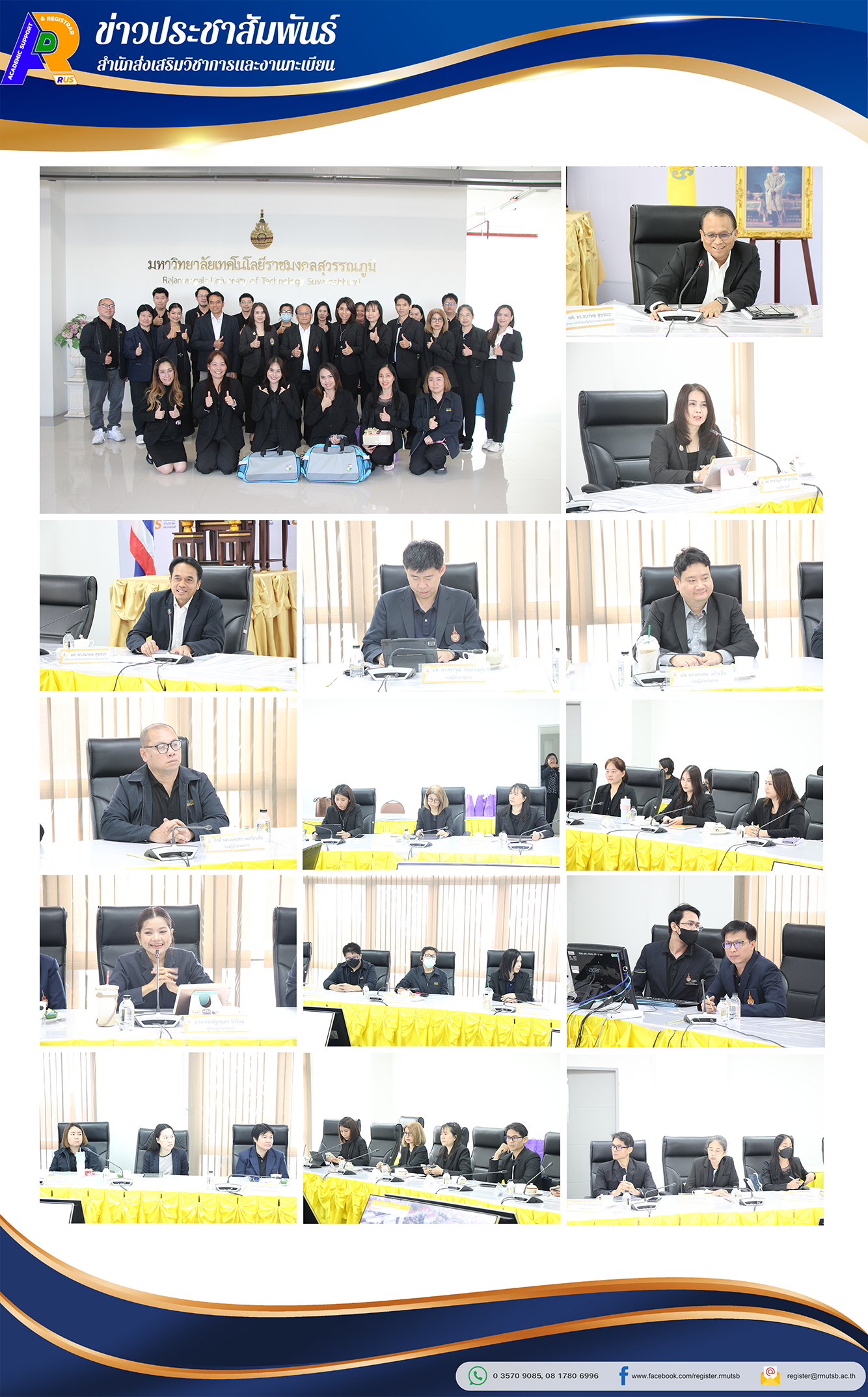 เมื่อวันศุกร์ที่ 12 ธันวาคม 2568 มหาวิทยาลัยเทคโนโลยีราชมงคลสุวรรณภูมิ (มทร.สุวรรณภูมิ) นำโดย ผู้ช่วยศาสตราจารย์ ดร.สุวุฒิ ตุ้มทอง รองอธิการบดี เป็นประธานกล่าวต้อนรับคณะศึกษาดูงานจากมหาวิทยาลัยราชภัฏกาญจนบุรี (มรภ.กาญจนบุรี) นำโดย ผู้ช่วยศาสตราจารย์ ดร.ขวัญนรี กล้าปราบโจร รองอธิการบดี พร้อมด้วยคณะผู้บริหารและบุคลากร ในการนี้ ผู้ช่วยศาสตราจารย์ ดร.ธนาพล สุขชนะ ผู้อำนวยการสำนักส่งเสริมวิชาการและงานทะเบียน มทร.สุวรรณภูมิ พร้อมด้วยผู้บริหารและเจ้าหน้าที่ ได้ร่วมให้การต้อนรับและประชุมแลกเปลี่ยนเรียนรู้ร่วมกับสำนักส่งเสริมวิชาการและงานทะเบียน มรภ.กาญจนบุรี ในหัวข้อ "การจัดการเรียนรู้ตลอดชีวิต ในระบบคลังหน่วยกิต (Credit Bank)" เพื่อสร้างเครือข่ายความร่วมมือและยกระดับงานบริการการศึกษาของทั้งสองสถาบัน ณ ห้องประชุมผู้บริหาร ชั้น 4 อาคารบูรณมงคล (อาคาร 32) มทร.สุวรรณภูมิ ศูนย์พระนครศรีอยุธยา หันตรา