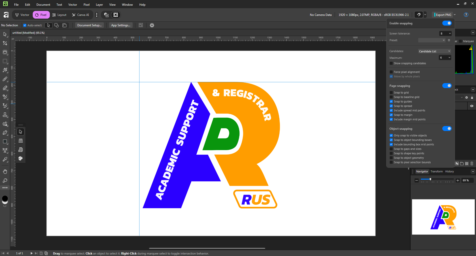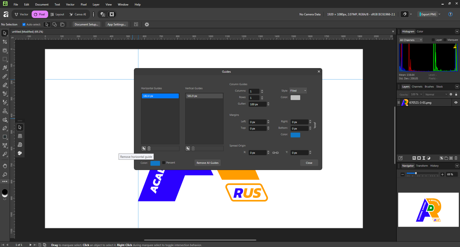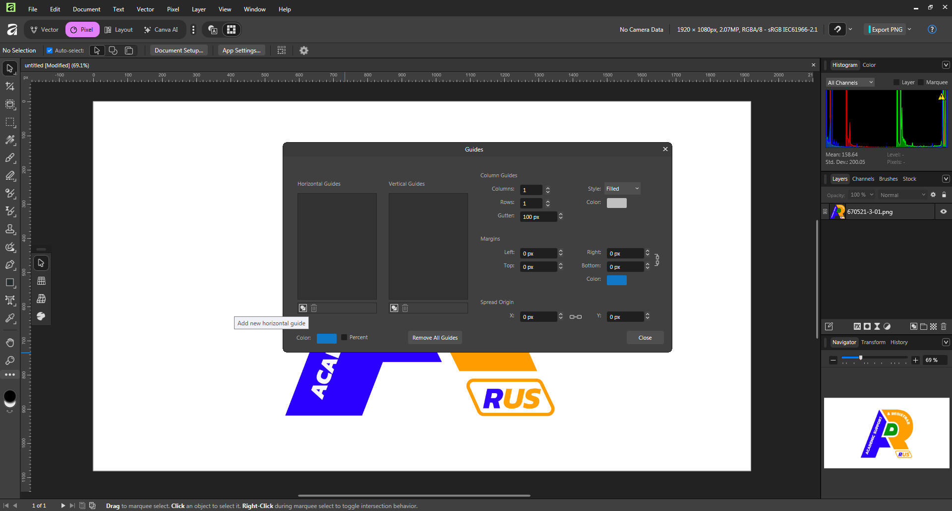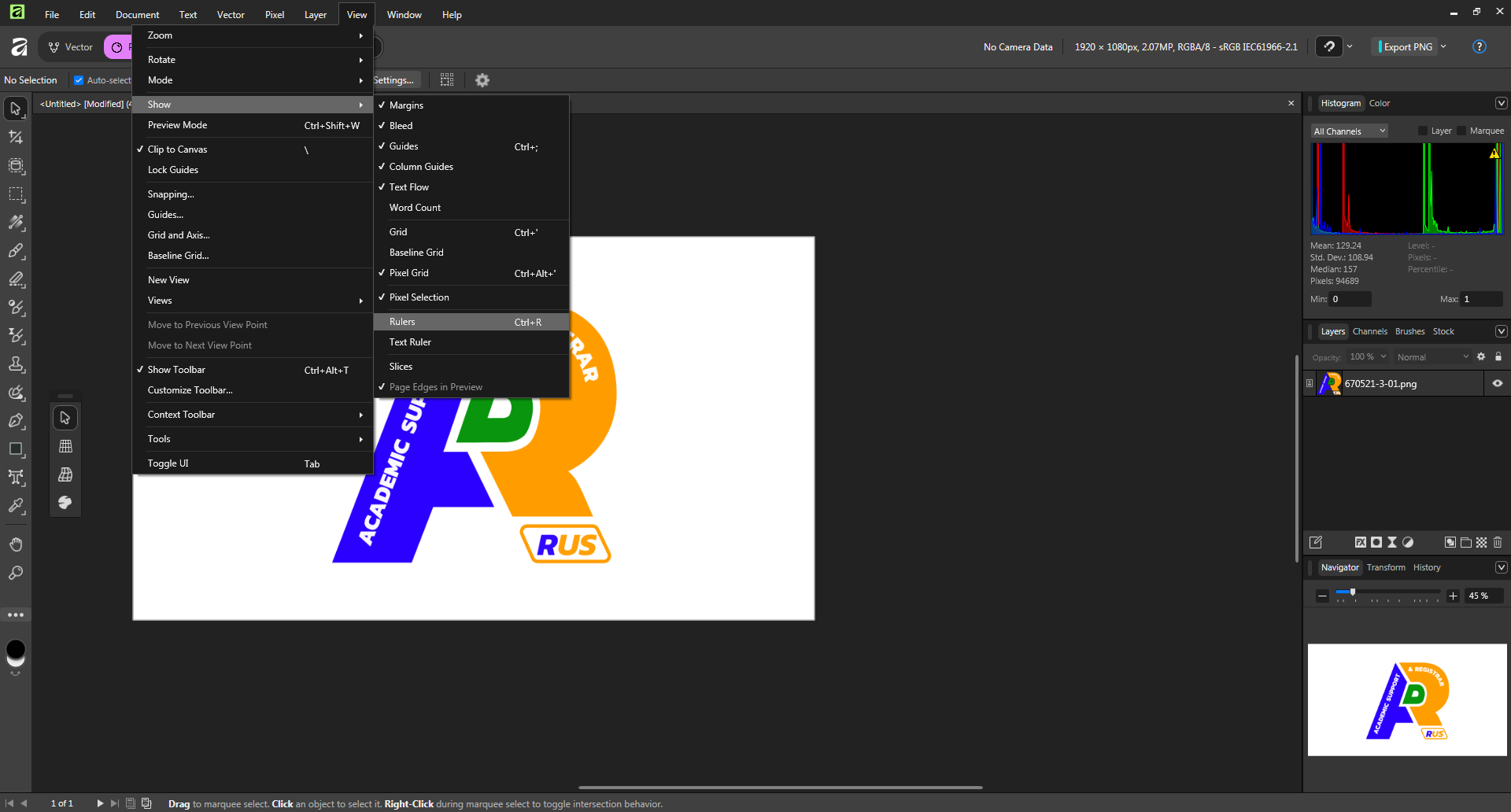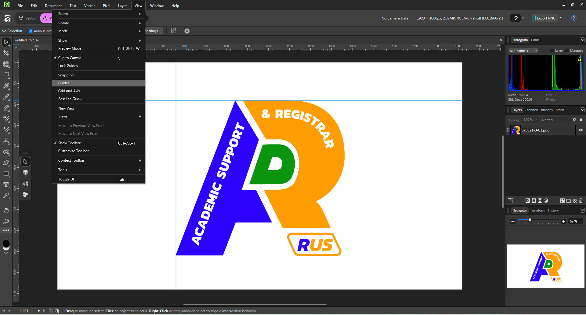 การใช้งานโปรแกรม Affinity : การเปิดใช้งานเส้น Guides