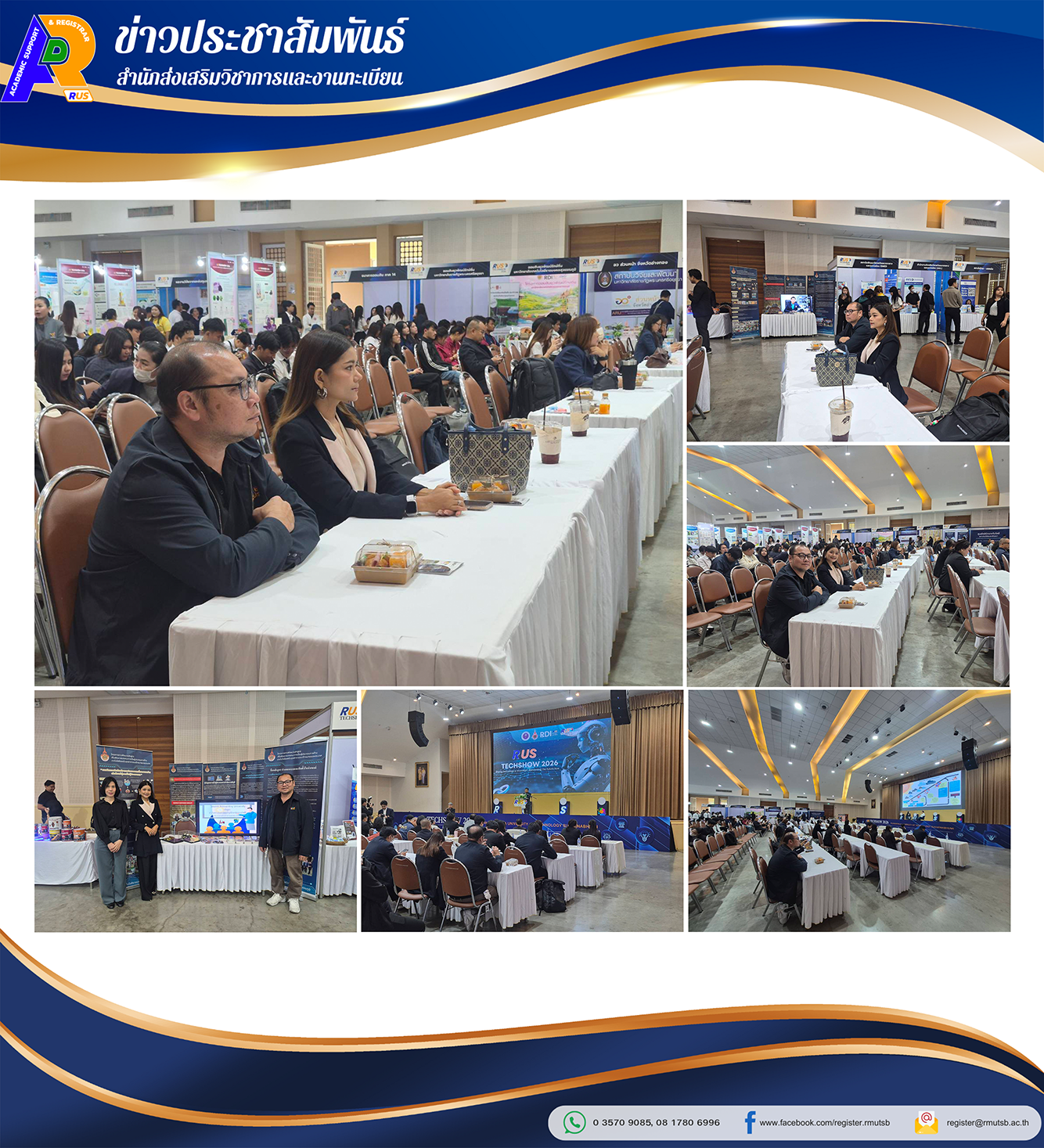 ว่าที่พันตรีพลปชา มณรัตนชัย รองผู้อำนวยการสำนักส่งเสริมวิชาการและงานทะเบียน พร้อมด้วย อาจารย์ณัฐกฤตา รักใหม่ ผู้ช่วยผู้อำนวยการ และบุคลากร ร่วมโครงการ RUS Techshow 2026 เพื่อแสดงผลงานโครงการ Reinventing University ประจำปีงบประมาณ 2567-2568 ที่ได้ดำเนินการพัฒนาสื่อการเรียนรู้ออนไลน์และแอปพลิเคชันส่งเสริมการท่องเที่ยวในพื้นที่เกาะเมืองจังหวัดพระนครศรีอยุธยา เพื่อรองรับการพัฒนาหลักสูตรระยะสั้น การพัฒนาสมรรถนะการเป็นผู้ประกอบการด้านเทคโนโลยีรองรับอุตสาหกรรมเป้าหมายของประเทศของอาจารย์และนักศึกษา ร่วมกับทั้ง 6 คณะ เมื่อวันพุธที่ 28 มกราคม 2569 ณ หอประชุมพระพิรุณ - ระลึกโปรดเกล้าฯ มหาวิทยาลัยเทคโนโลยีราชมงคลสุวรรณภูมิ ศูนย์พระนครศรีอยุธยา หันตรา