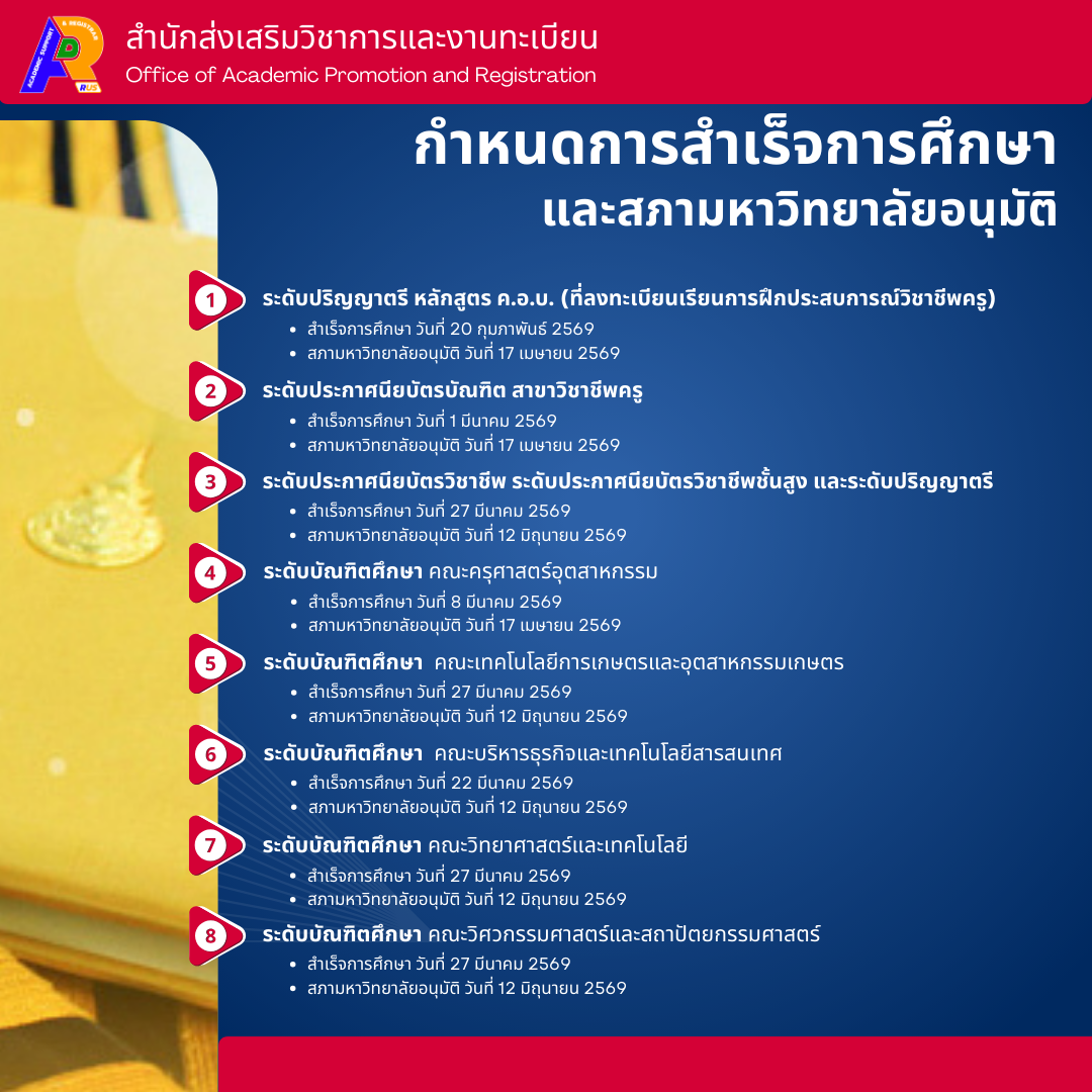 กำหนดการรับใบแสดงผลการศึกษาสำหรับนักศึกษาที่สำเร็จการศึกษา ภาคการศึกษาที่ 2 ปีการศึกษา 2568